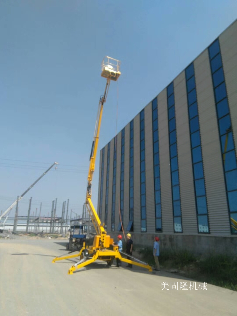 曲臂高空作业车广泛适用于市政、电力、路灯、广告、通讯、摄影、园林、交通、码头、机场港口、大型工矿企业等行业的安装维修及登高作业。适用于野外各种崎岖地形,空间作业范围广,主要用于建筑,桥梁建设、船舶制造、机场、矿山、港口码头、通信和电力设施的施工及户外广告的工程机械设备。