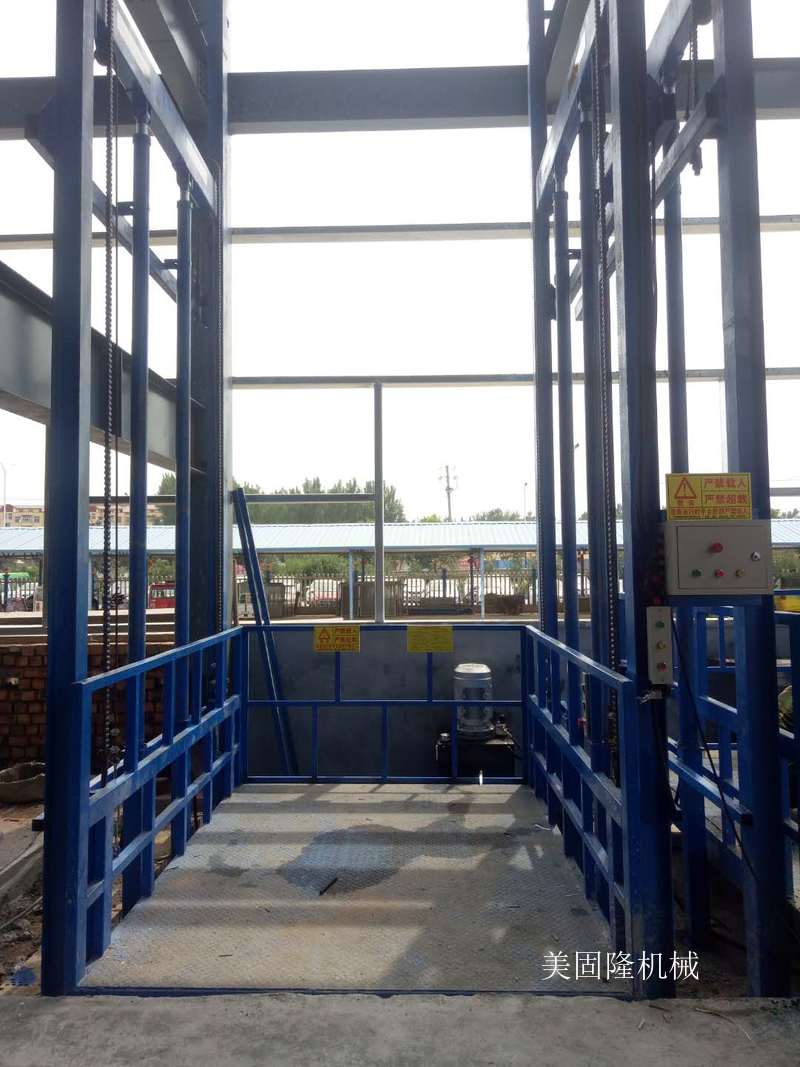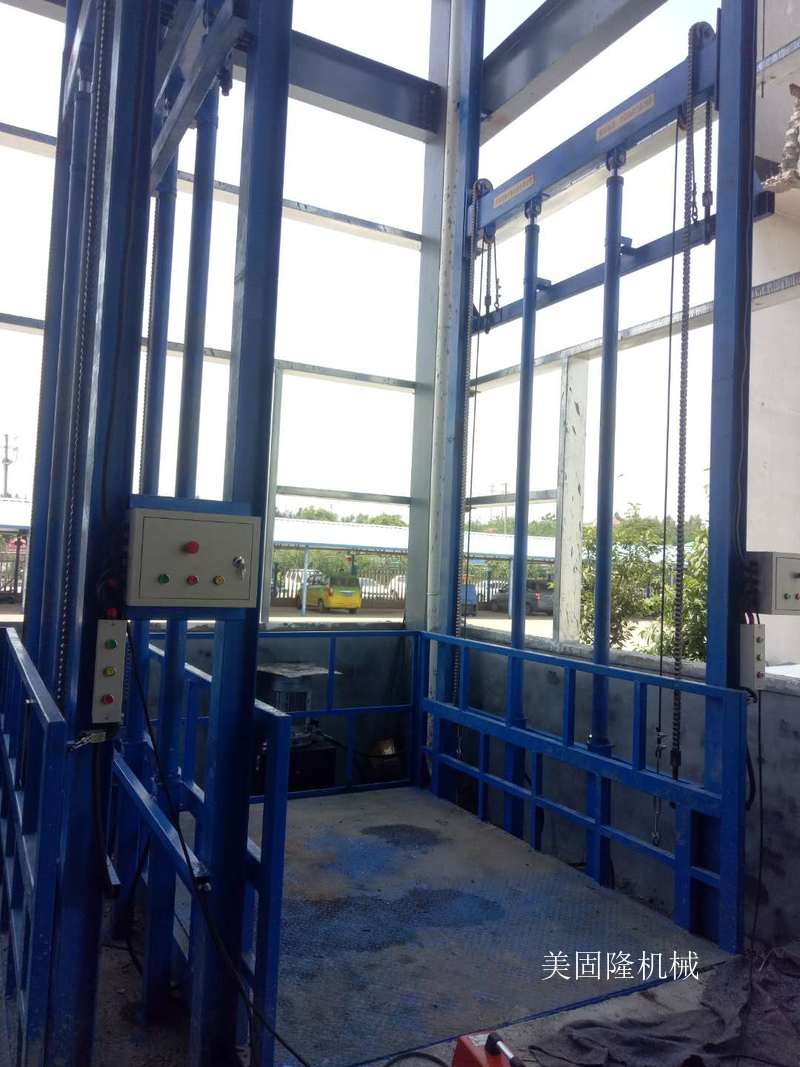 导轨式升降货梯是用于货物升降的液压升降机械设备,采用液压油缸作为主要动力,通过重型链条和钢丝绳传动,保证机器运行的绝对安全。导轨式升降货梯无需地坑和机房,特别适合于有地下室、仓库改造、新建货架等,具有安装维修方便、美观、安全、操作方便。具体根据现场的实际环境生产。
