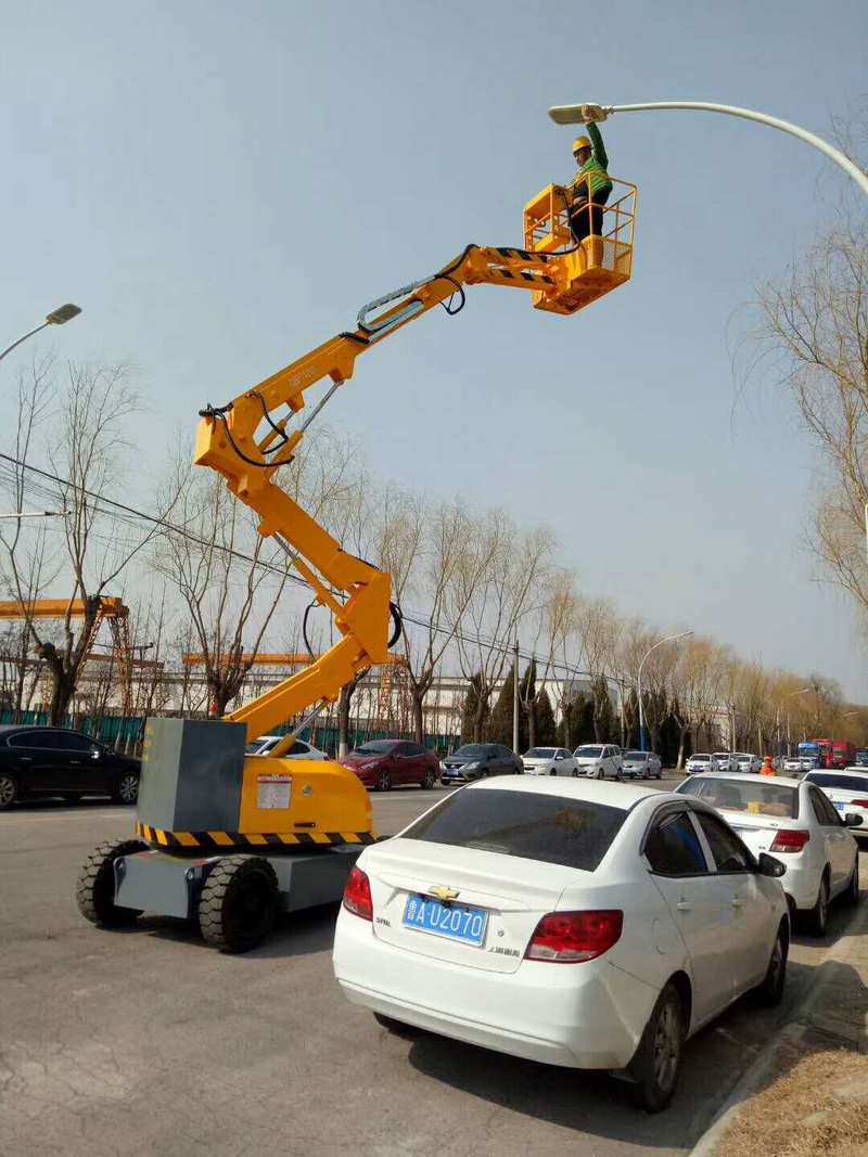 曲臂式升降平台装维修及登高作业,适用于野外各种崎岖地形,空间作业范围广,主要用于建筑,桥梁建设、船舶制造、机场、矿山、港口码头、通信和电力设施的施工及户外广告的工程机械设备。