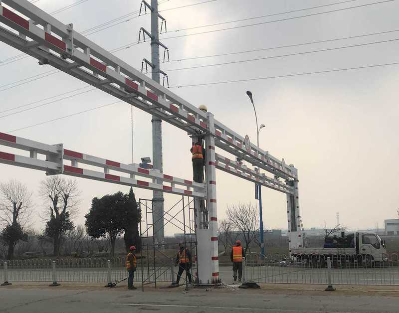 固定一体限高架主要用于桥梁、涵洞、隧道入口处的门型构架,一般为钢结构焊接而成,起防护桥梁、涵洞、隧道的作用;上有标志牌,标有限高米数,用于提示车辆。