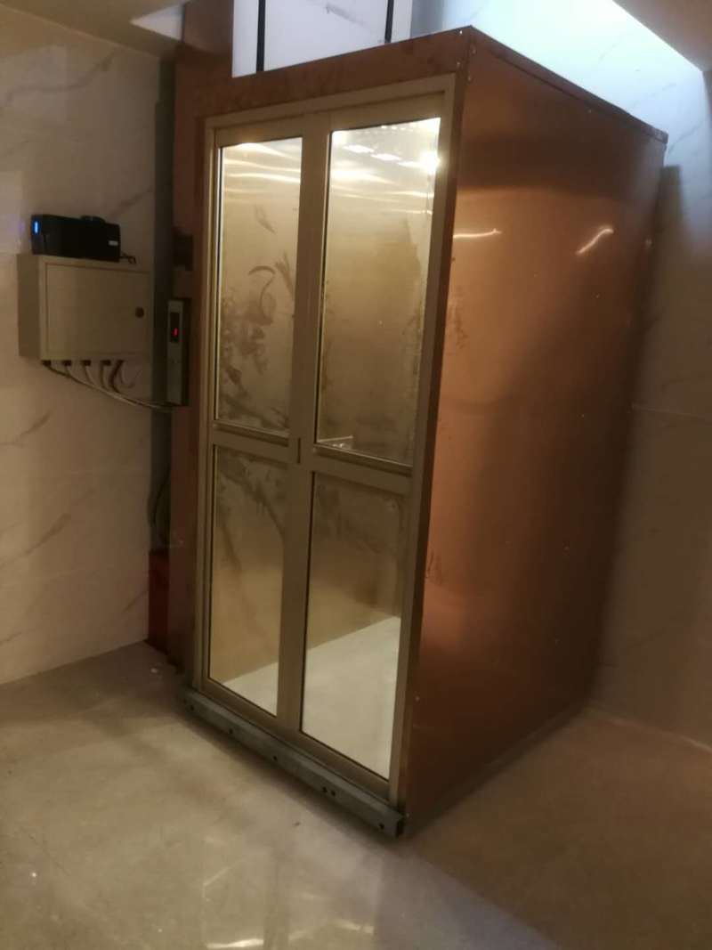 曳引家用电梯或别墅电梯:井道及地坑、轿厢、层站部分;主要部件:曳引系统、导向系统、门系统、轿厢、重量平衡系统、电器控制系统、安全保护系统,电气方面的安全保护在电梯的各个运行环节都有,这种电梯同小区电梯相同。安静平稳、价格经济、乘坐舒适,方便残疾人和老年人使用的家居电梯。