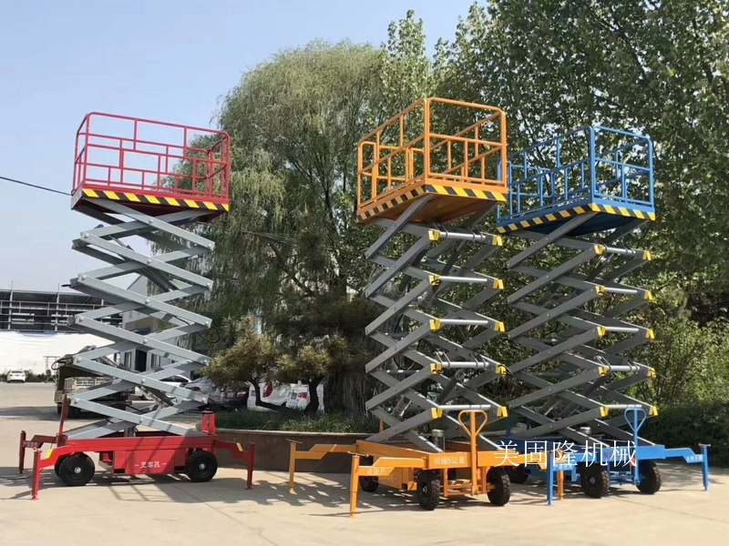 移动式升降机有人工移动式升降机、电动移动式升降机,另备有手压泵,供停电时使用,具有移动灵活、升降平稳、操作方便、载重量大等特点。升降动力分为220V或380V电源,采用国外和国产液压泵站。主要适用于工厂、物业单位、商店装潢、建筑、装饰、场馆馆布置、会议中心等行业。移动式升降机考虑到移动方便性更考虑到较高的稳定性,宽大的作业平台和较高的承载能力,使高空作业范围更大更广、可以多人同时作业。提高了工作效率保障了人身安全,的确是高空作业得力助手。