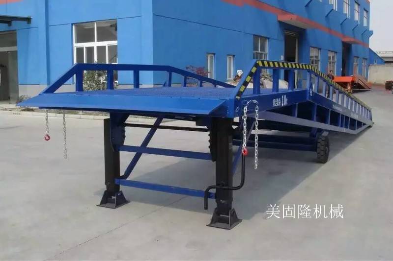 移动式登车桥用于现场无装卸货平台或需要流动装卸货物的场所。如果物流现场没有装卸货平台,作为补救措施,移动式登车桥是非常适用的方案之一,移动式登车桥相当于一个移动的钢结斜坡,叉车同样能直接驶入卡车车厢内部进行批量装卸作业。只需单人操作,不需动力电源,即可实现货物的安全快速装卸。