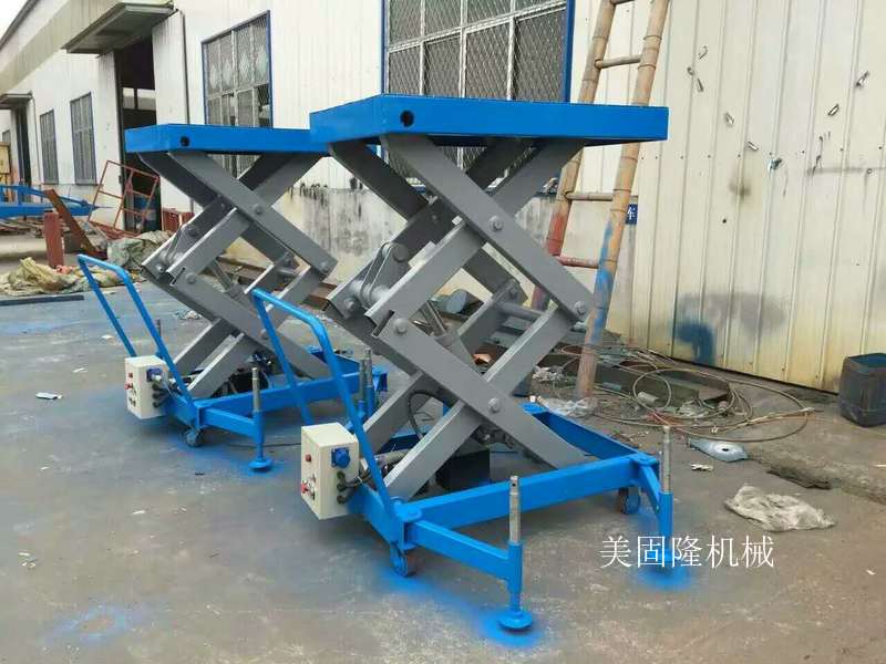 移动式升降机有人工移动式升降机、电动移动式升降机,另备有手压泵,供停电时使用,具有移动灵活、升降平稳、操作方便、载重量大等特点。升降动力分为 220V或380V电源,采用国外和国产液压泵站。主要适用于工厂、物业单位、商店装潢、建筑、装饰、场馆馆布置、会议中心等行业。