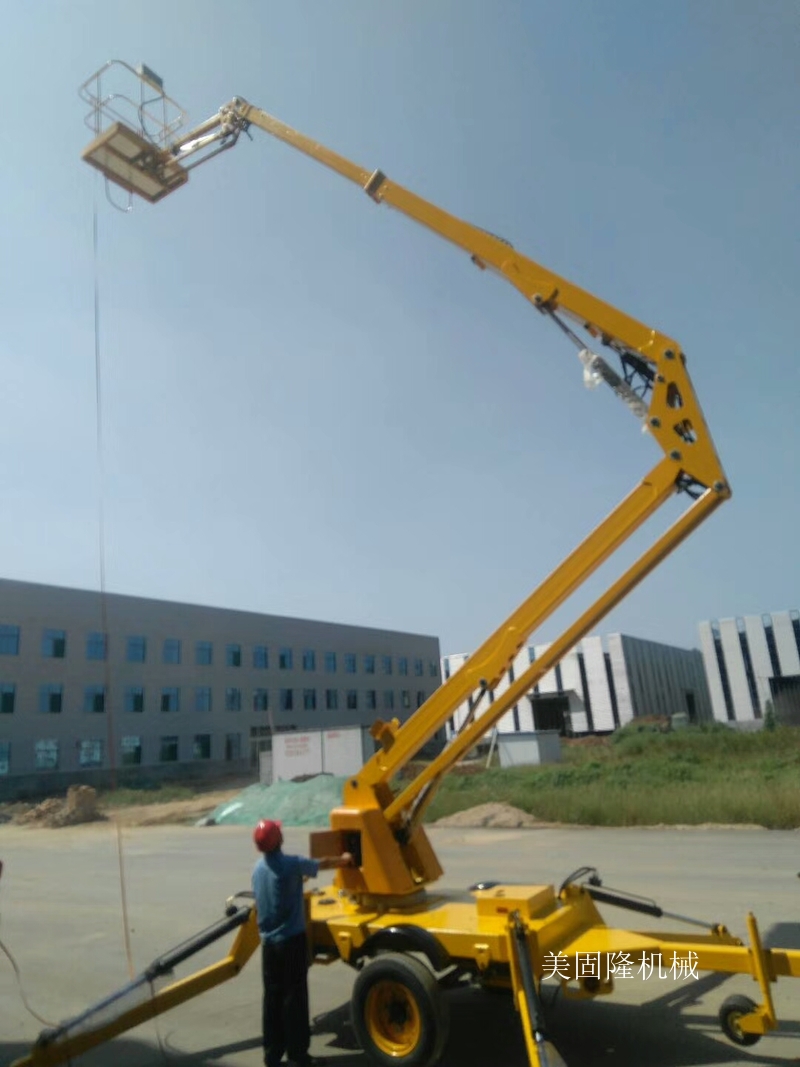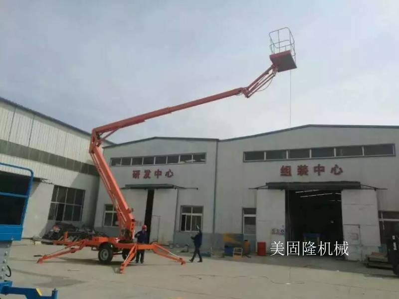 曲臂高空作业车广泛适用于市政、电力、路灯、广告、通讯、摄影、园林、交通、码头、机场港口、大型工矿企业等行业的安装维修及登高作业。适用于野外各种崎岖地形,空间作业范围广,主要用于建筑,桥梁建设、船舶制造、机场、矿山、港口码头、通信和电力设施的施工及户外广告的工程机械设备。