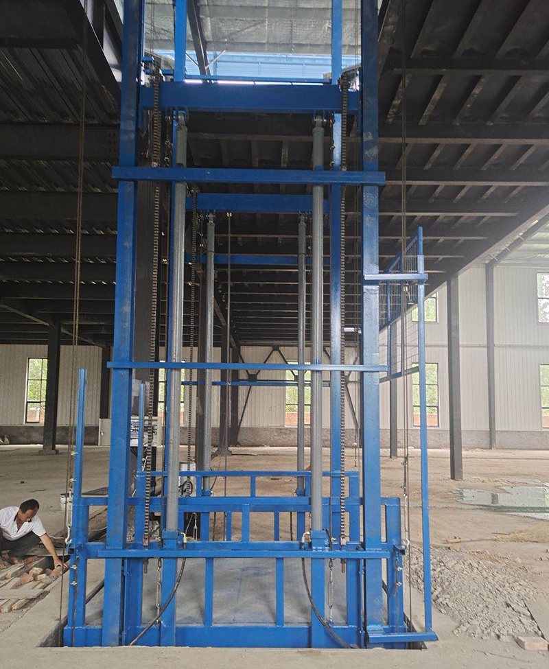 液压货梯是常用于楼房或者车间、仓库、厂房等,一般是采用液压油缸和泵站,产品其液压系统可设置防坠系统,四角设置带有平衡油丝绳,设有互动连锁功能,液压货梯可多点设置操作按钮装置,能够实现多点控制。由不同的电器元件组合而成,对于低楼层运输设备而言,液压货梯是较为经济实用、快速高效平稳的运输工具。