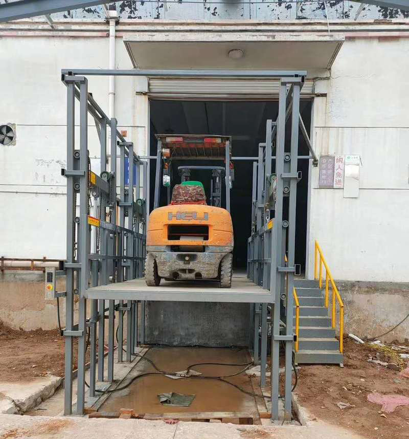 2.升降高度稳定性,能满足大吨位货物平稳举升.设有防附,超载安全保护的液压系统,保障运行安全。