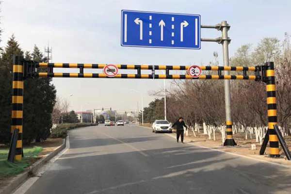 可调节高度限高架分为手动限高架、电动限高架两种;手动限高架通过手动装置在需要时可手动抬起限高杆;电动限高架又分为电动限高架、电动液压限高架、气动限高架等。